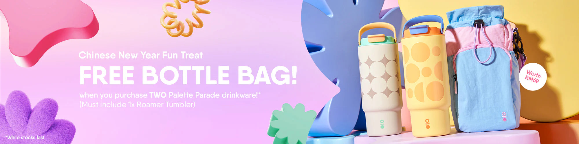 Limited Time Offer: FREE Palette Parade Bottle Bag when you purchase TWO Palette Parade drinkware (must include 1x Roamer Tumbler)!*